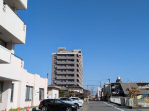 マンションから学校まではほぼ一本道で通学でき、見通しの良い道が続いています。